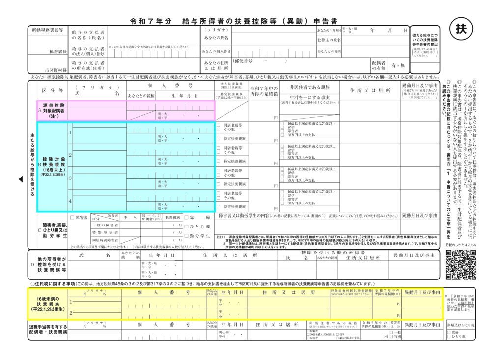 ⇩扶養控除等(異動)申告書(以後省略して「扶」とします)と、